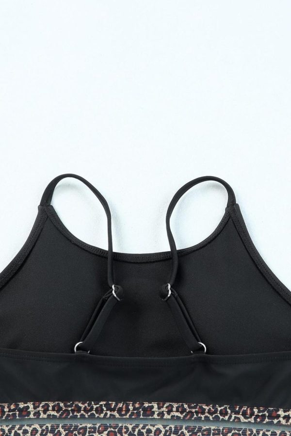 Bikini Sets | Black Leopard Print Spaghetti Strap Padded Wireless Bikini Set – Women