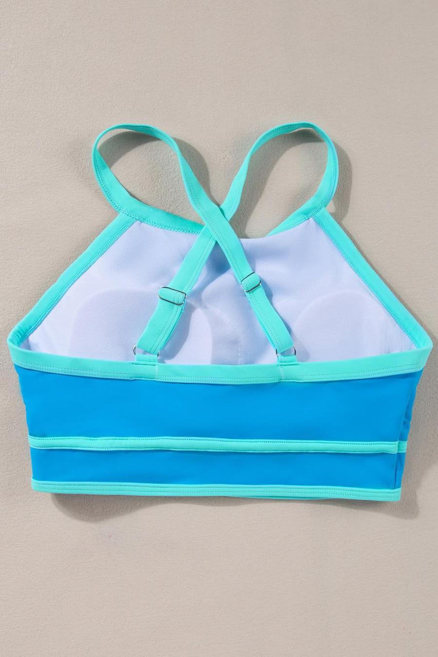 - Blue Colorblock High-Waisted Bikini For A Confident, Stylish Look.