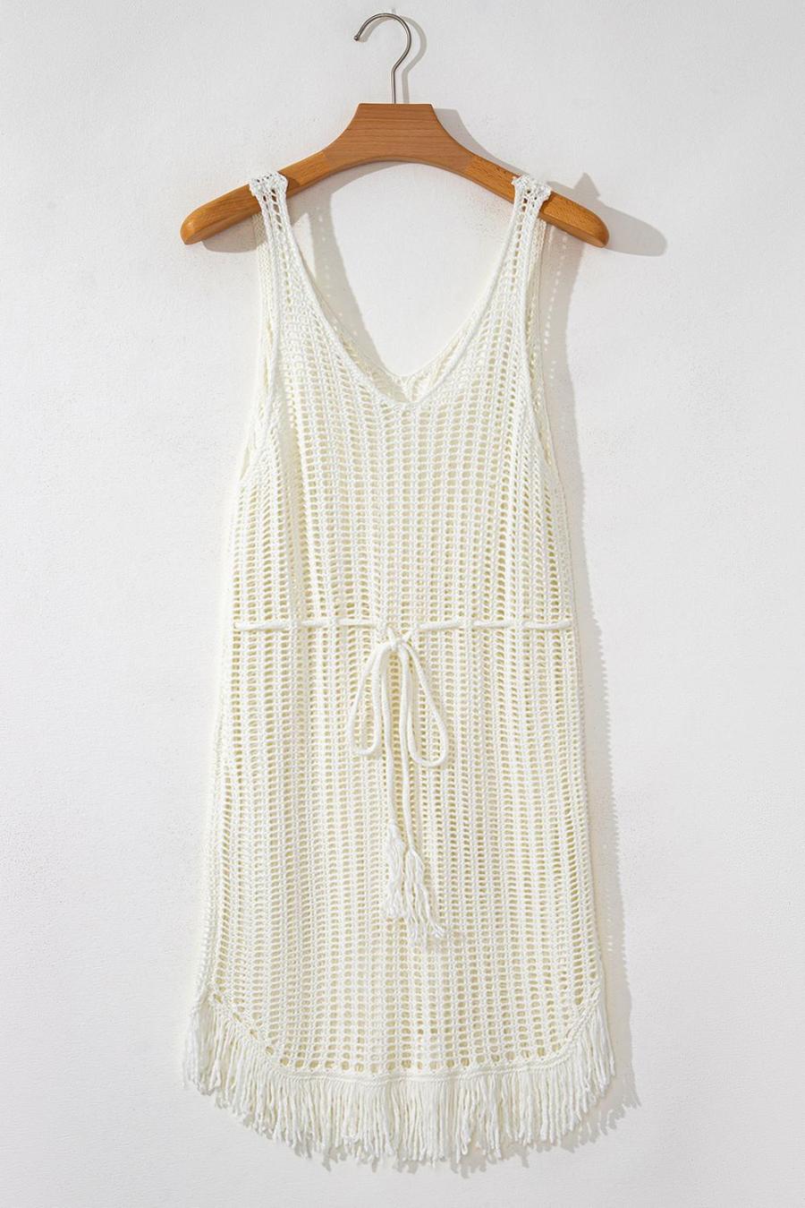 • The Intricate Crochet Fishnet Design Adds A Touch Of Bohemian Charm, While The Fringe Hem Detail Brings Playful Movement To Your Look.