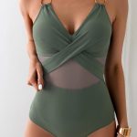 One-Piece | Black Color Block Leopard Print Strap One Piece Swimsuit – Women