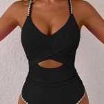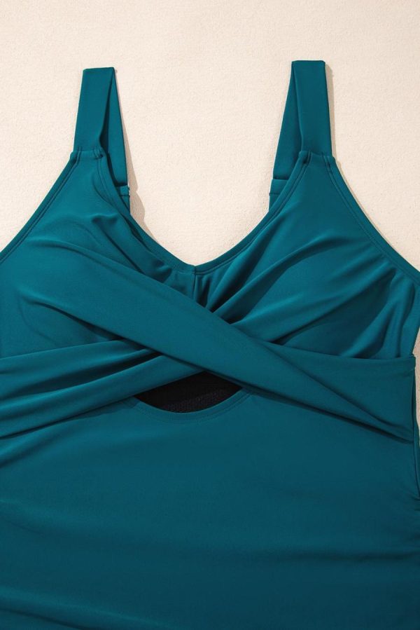 One-Piece | Sea Green Adjustable Straps Cutout Ruched Knot Slit One Piece Swim Dress – Women