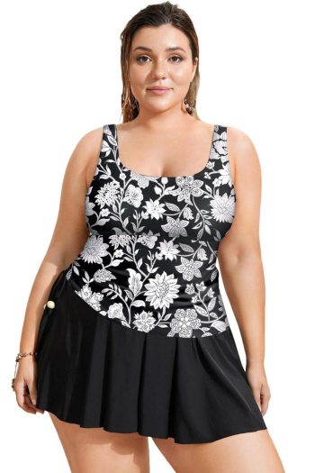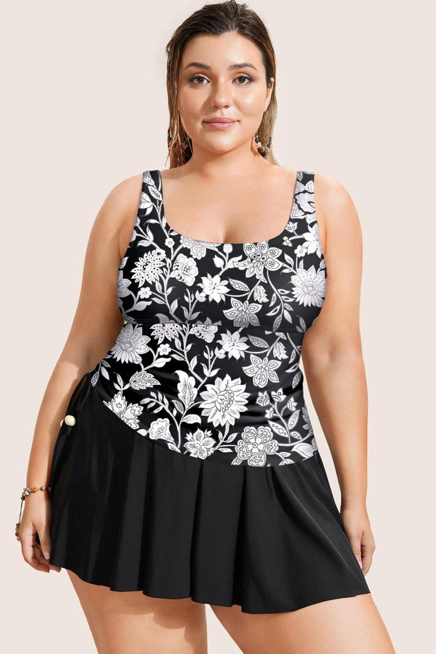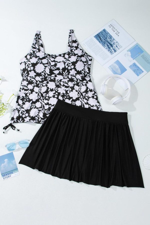 Tankinis | Black Plus Size Floral Print Drawstring Ruffled Tankini Set – Women
